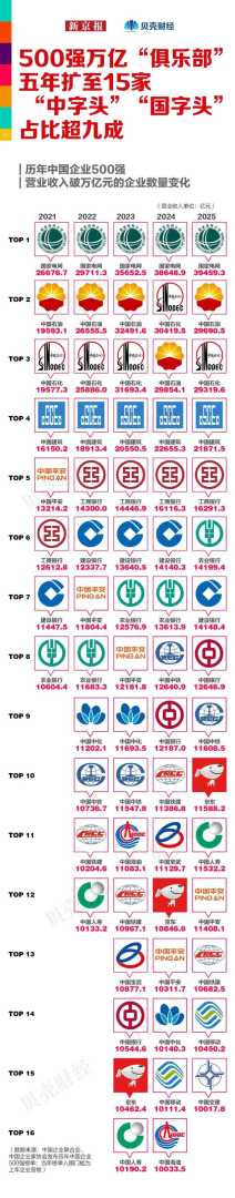【图4】500强万亿阵营五年扩至15家 “中字头”“国字头”占比超九成
