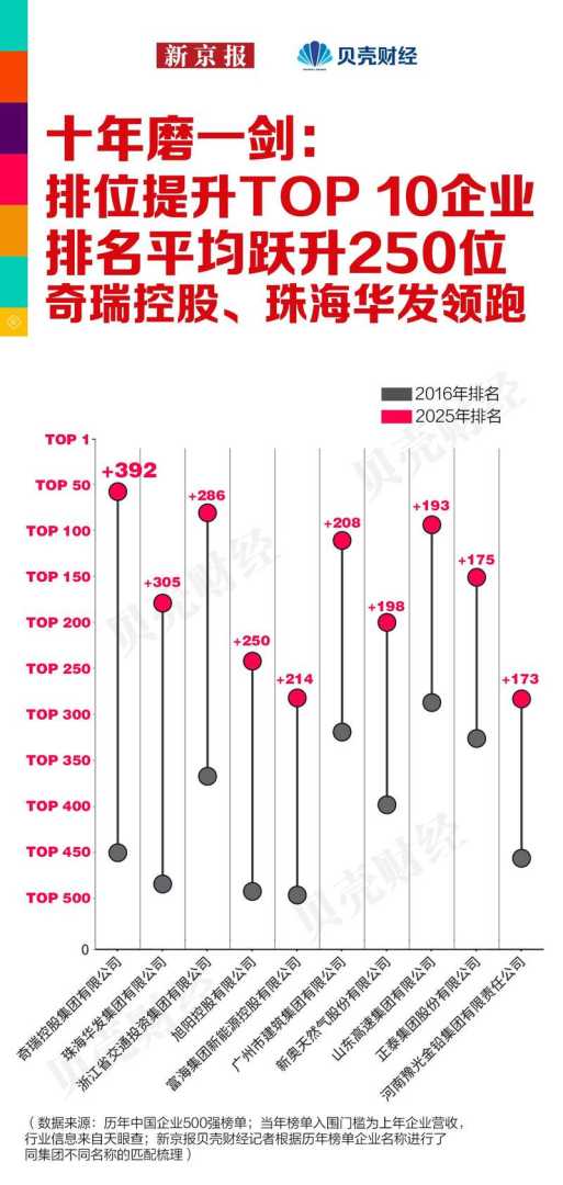 【图7】十年磨一剑:排位提升Top10企业排名平均跃升250位奇瑞控股、珠海华发领跑