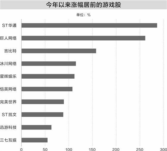 今年以来,游戏行业指数累计上涨82.61%,游戏板块涨幅在全部申万二级行业中排名第三,成为今年表现最好的板块之一。6只游戏股最新价较去年年末实现翻倍,ST华通、巨人网络、吉比特累计涨幅居前,分别为286.19%、261.23%、157.39%。