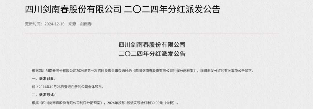 2019 - 2023年五年间,剑南春分别派发股息0.77元、0.8元、0.96元、0.96元及1.18元,五年合计不足5亿元。今年7月,一份未盖公章的剑南春股东大会资料流传于网上。根据这份资料,2024年公司收入106.6亿元,同比增长14.9%;归母净利润突破20亿元。2024年利润仅20亿,分红却高达35亿元,远超公司一年利润,这种分红模式引发业内对剑南春集团财务策略的讨论。