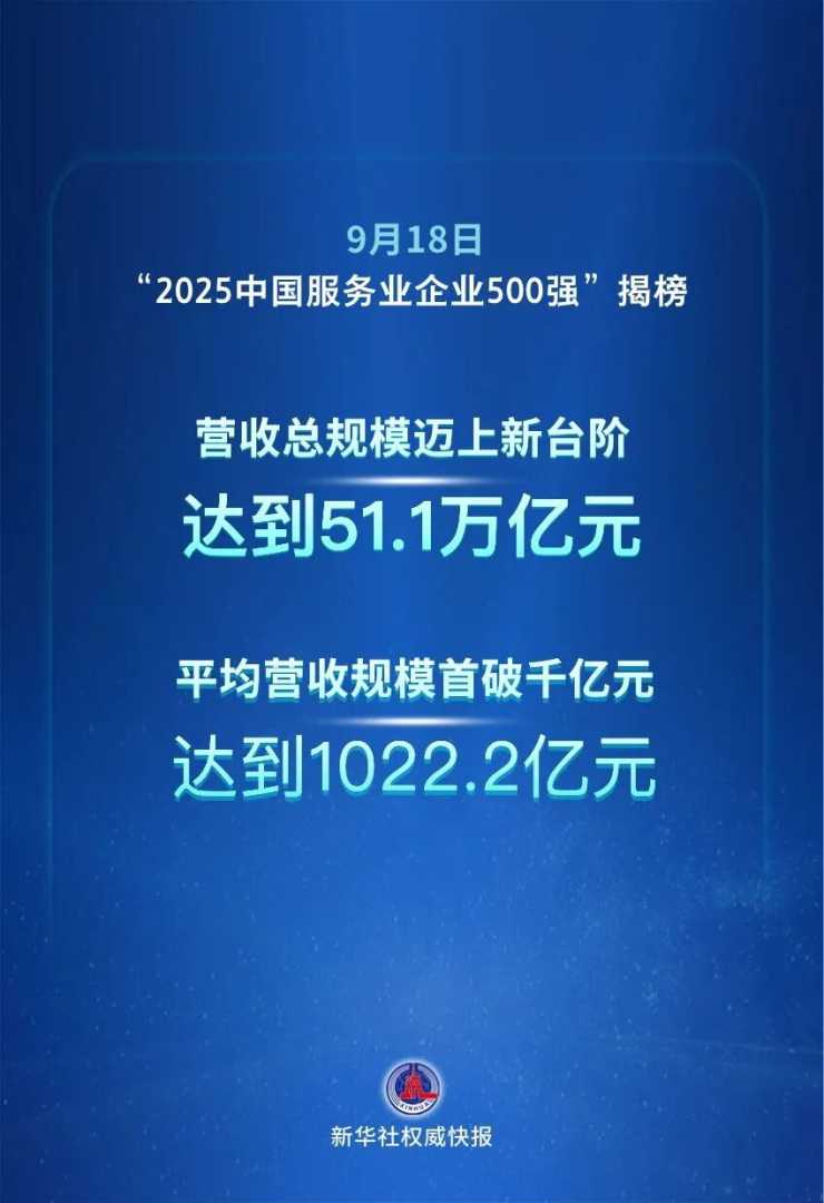 新华社权威快报|“2025中国服务业企业500强”发布,平均营收规模首破千亿元大关