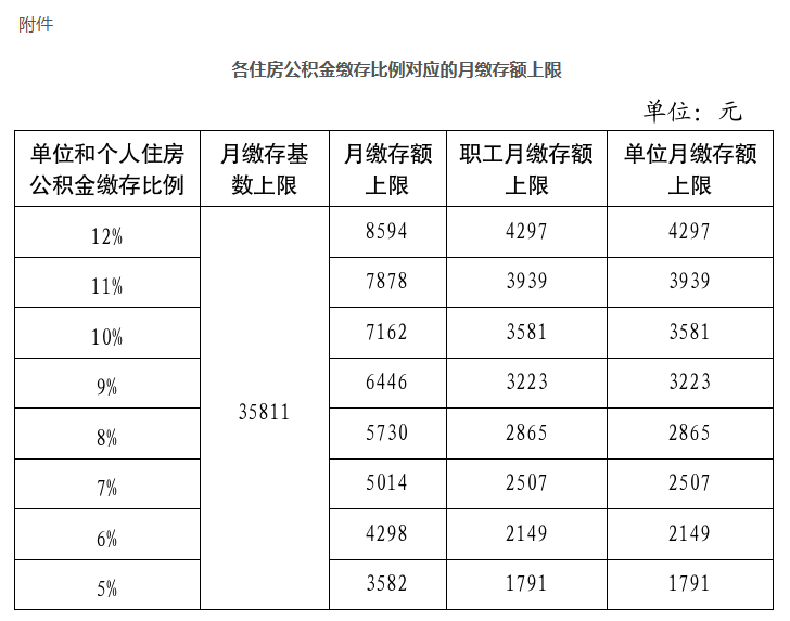 2025住房公积金年度住房公积金月缴存基数上限为35811元,具体缴存比例对应月缴存额上限见下图;自2025年9月1日起,住房公积金月缴存基数下限调整为2540元,领取基本生活费职工的月缴存基数下限为1778元。新受理的住房公积金个人住房贷款,计算借款申请人贷款金额所使用的月基本生活费标准按1778元执行,这一调整将更精准地反映职工的实际生活状况。
