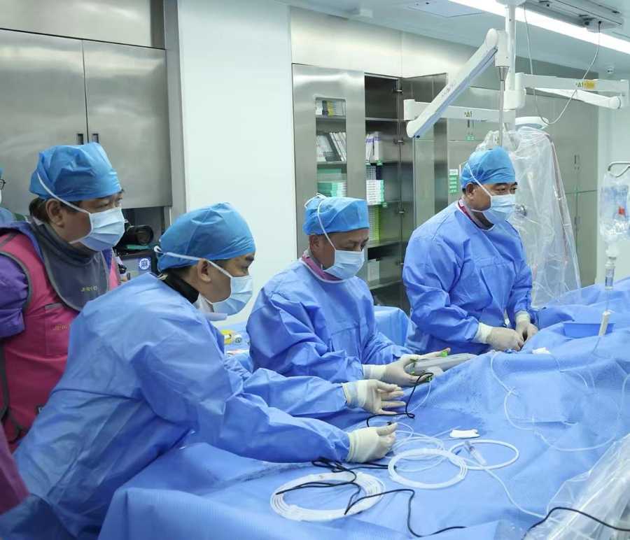 佛山复星禅诚医院大内科主任彭宇程教授(右一)在手术中