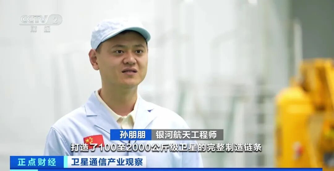 银河航天工程师孙朋朋:打造了100公斤至2000公斤级卫星的完整制造链条,产线可以满足年产100颗到150颗中型卫星的研制能力,研制周期缩短了80%,让批量造星成为可能,提升卫星制造效率。