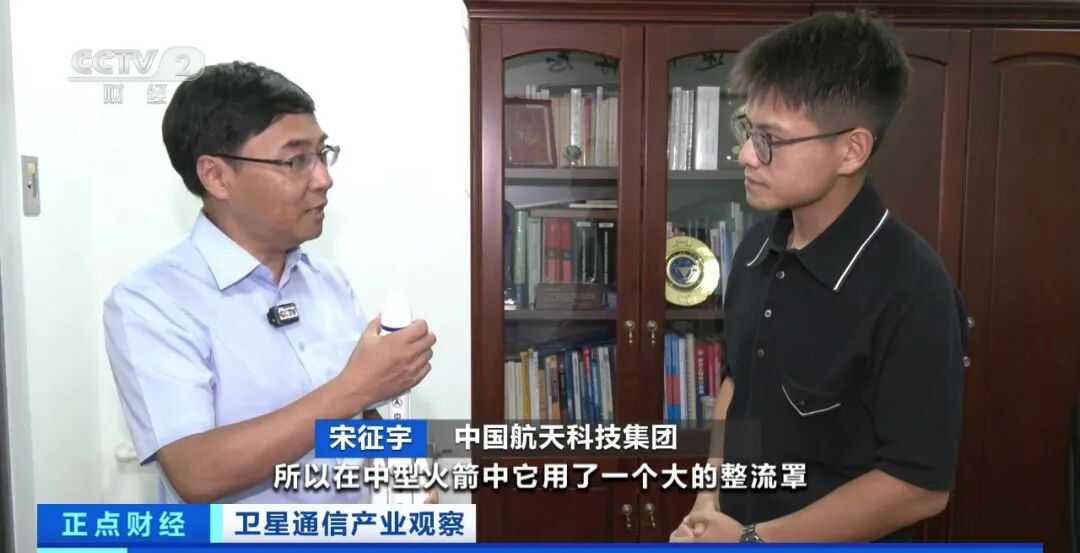 中国航天科技集团宋征宇:因为卫星比较大比较多,所以在中型火箭中它用了一个大的整流罩。现在为了加快生产的频次,我们采用了产品化的设计,就是长征八号和长征七号,这两个助推器和芯一级模块采用统型的产品,我们就可以大批量生产,优化火箭生产流程。