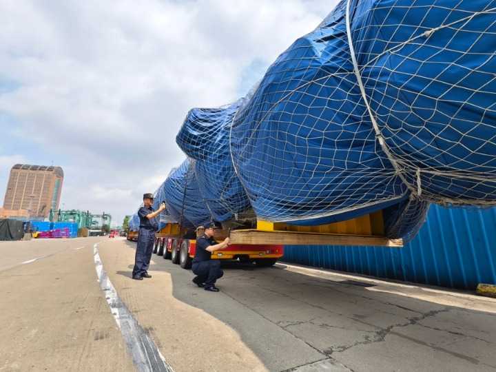 上海吴淞海关对出口至共建“一带一路”国家的大型设备进行现场监管。(路慎利摄)