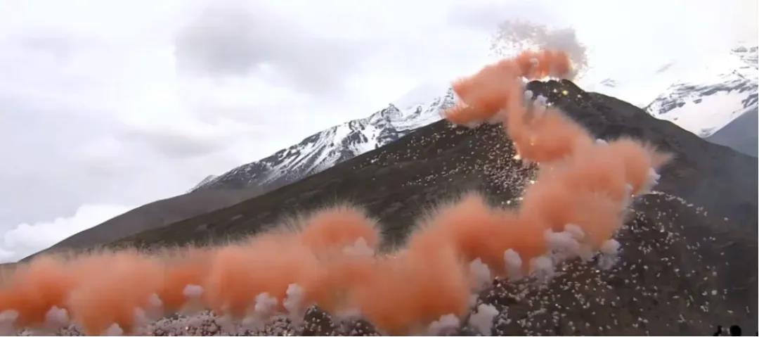 因为是在雪域高原地区创作,所以项目团队在生态保护方面制定了“预防一监测一恢复”的全链条方案:燃放前已将牧民牲畜转移至安全距离,并通过盐砖引导鼠兔等小型动物离开燃放区;燃放后立即清理残留物,并对草甸、农田进行翻土与植被修复,确保生态安全,不留隐患。