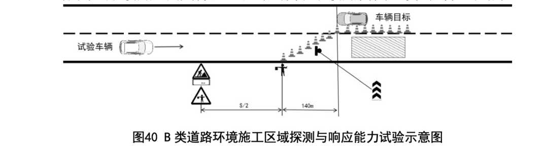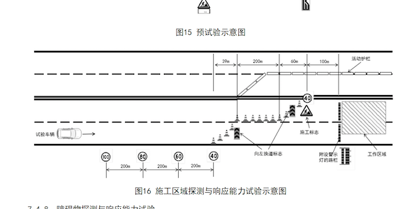 记者注意到,L2强制性国标中有两个试验场景,与“3·29铜陵小米SU7爆燃事故”发生时的场景高度相似,分别为7.4.7章节的“施工区域探测与响应能力试验”和7.5.8章节的“B类道路环境施工区域探测与响应能力试验”。示意图如下: