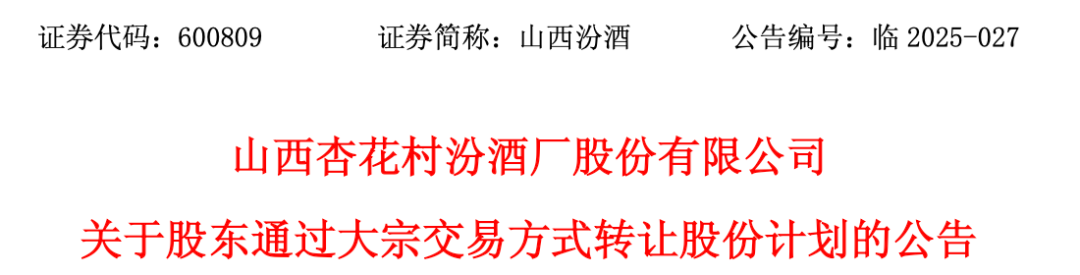 事实上,这并非华创鑫睿首次减持山西汾酒持股。2024年11月末,山西汾酒曾公告,华创鑫睿计划减持不超过630万股,占公司总股本的0.52%。此后在2024年12月23日至2025年2月19日期间,华创鑫睿通过大宗交易方式累计减持山西汾酒630万股,减持价格在180.00—183.33元/股,减持总金额为11.40亿元;华创鑫睿持有公司股份比例从11.02%降至10.50%。