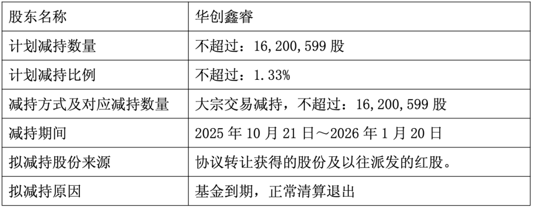 山西汾酒表示,根据联和基金相关合作协议,其面临基金到期退出安排,需要减持其间接持有的全部公司股份,因此华创鑫睿本次拟通过大宗交易方式减持不超过1620.06万股(含本数),即减持比例不超过1.33%,自本次减持计划公开披露之日起15个交易日后的3个月内实施。