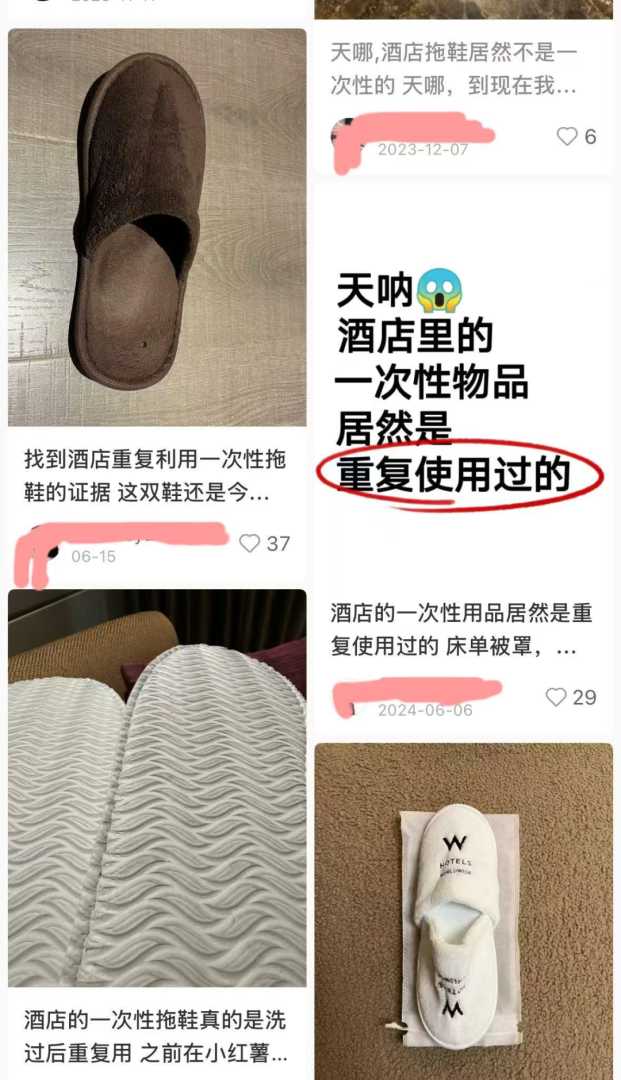 界面新闻记者搜索社交平台发现,关于五星酒店重复使用拖鞋的帖子不在少数,这一现象引发了公众对酒店卫生管理的热议。