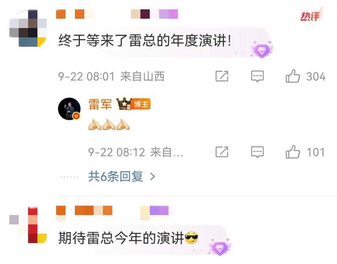 网友沸腾了,纷纷表示:期待雷总的演讲!