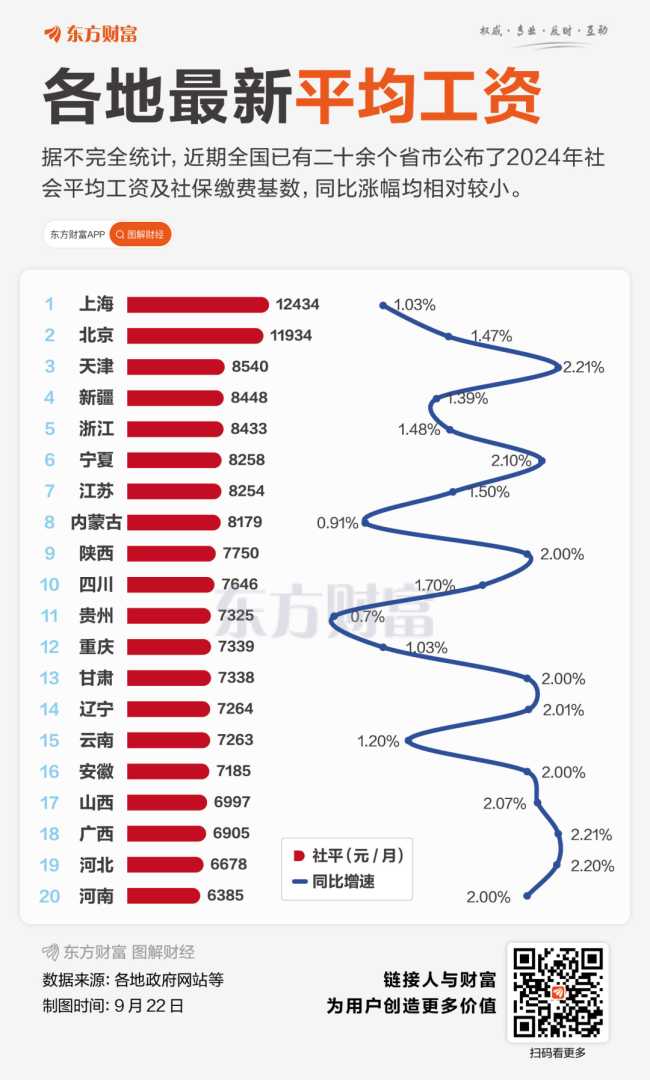 近年来,社保话题备受关注。北京和上海公布2024年社平工资数据,北京11934元/月,上海12434元/月。两地社平工资增速放缓,全国20个省份社平增速也有所下滑。