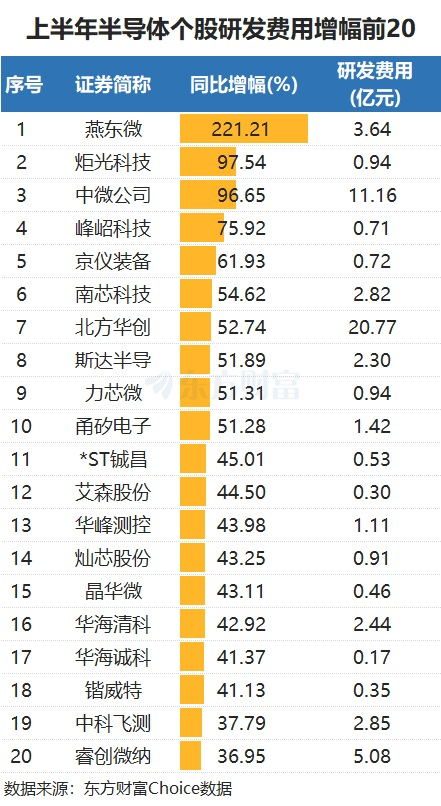 在AI发展及国产替代的背景下,年内A股半导体板块持续走强,不少公司的研发费用也是显著增加。比如燕东微,2025年中报显示,上半年研发费用为3.64亿元,同比增长221.21%。炬光科技、中微公司、峰岹科技等研发费用同比也明显增加。