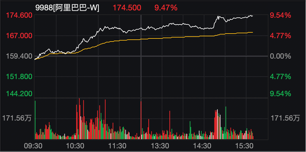 截至记者发稿,阿里巴巴港股扩大涨幅至9%。此外,阿里巴巴美股盘前也涨近10%,市场对AI技术商业化前景充满期待。