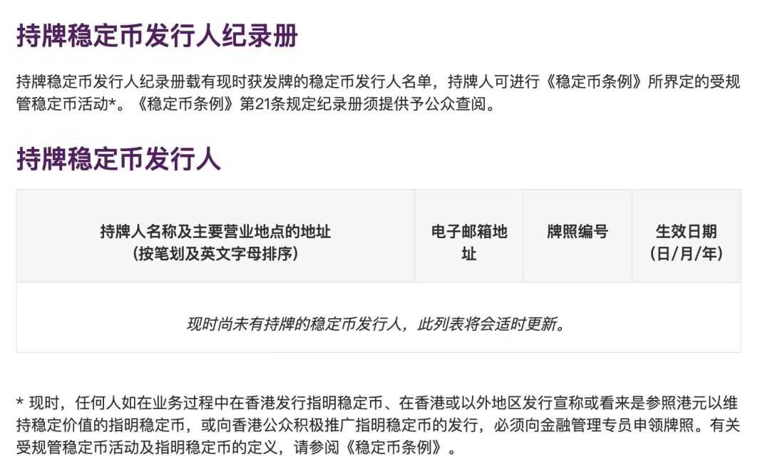 香港金管局同时称,公众可密切留意金管局的正式公告,核实有关稳定币发行人的牌照状况。金管局也会于网站持续更新持牌发行人名单,确保信息的透明度和准确性。
