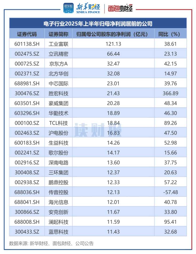 图2:电子行业2025年上半年归母净利润居前的公司
