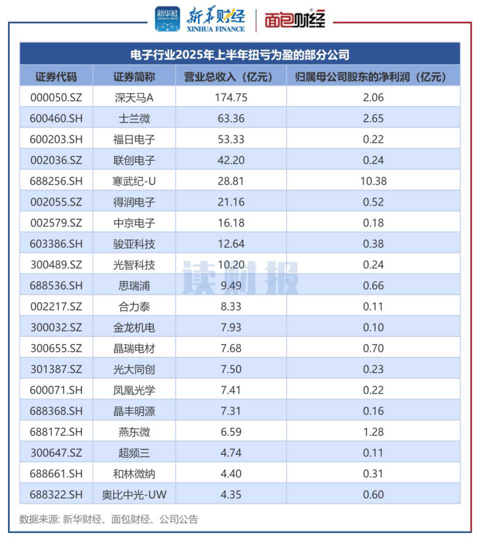 2025上半年电子行业复苏:营收利润双增,寒武纪等企业扭亏