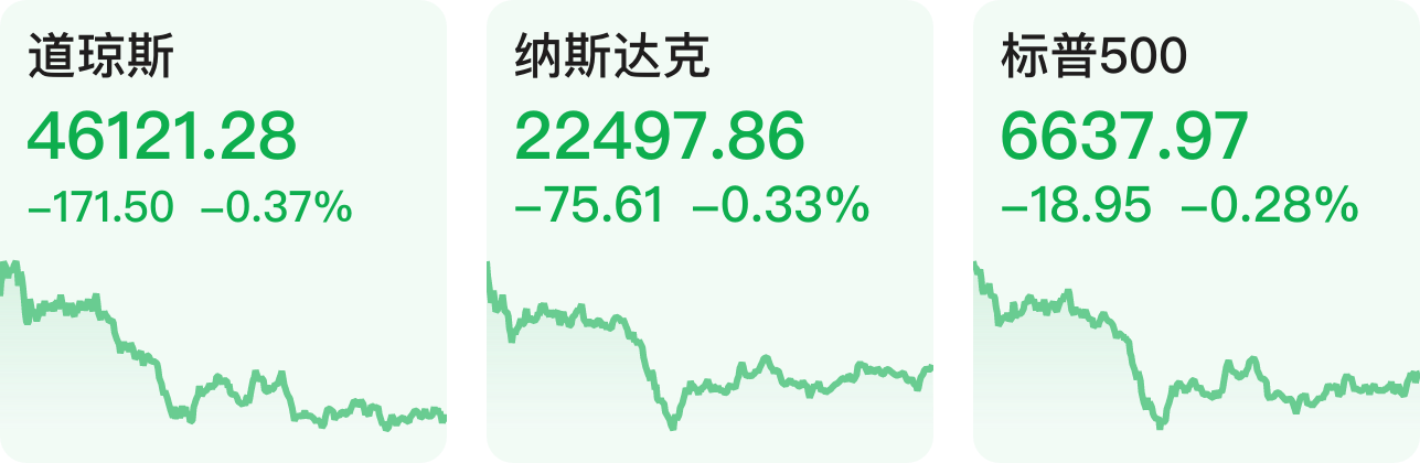 美股三大指数集体收跌,道指跌0.37%,纳指跌0.33%,标普500指数跌0.28%,热门科技股涨跌不一,英特尔涨超6%,特斯拉涨近4%,谷歌跌超1%,英伟达、苹果跌近1%。纳斯达克中国金龙指数涨2.83%,热门中概股普涨,阿里巴巴、万国数据涨超8%,百度、京东涨超5%,蔚来涨超2%。