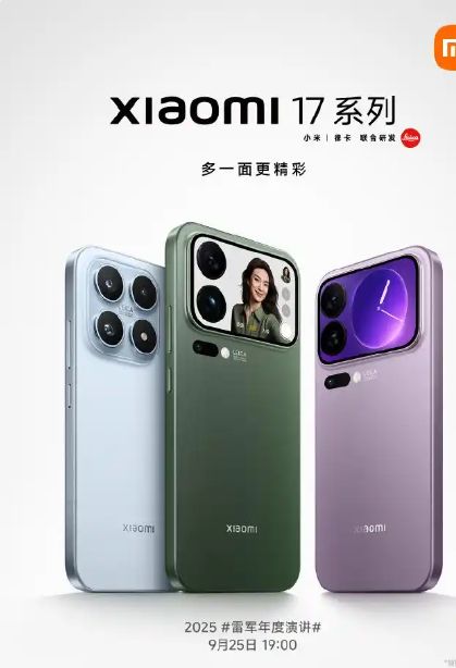 9月22日,小米董事长兼CEO雷军在社交平台发布消息,小米17系列将于9月25日晚7点正式发布,共推出三款机型:小米17、小米17 Pro、小米17 Pro Max。