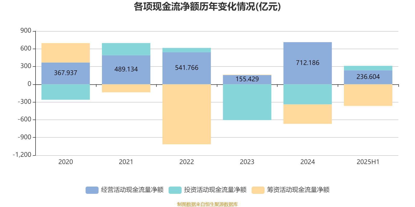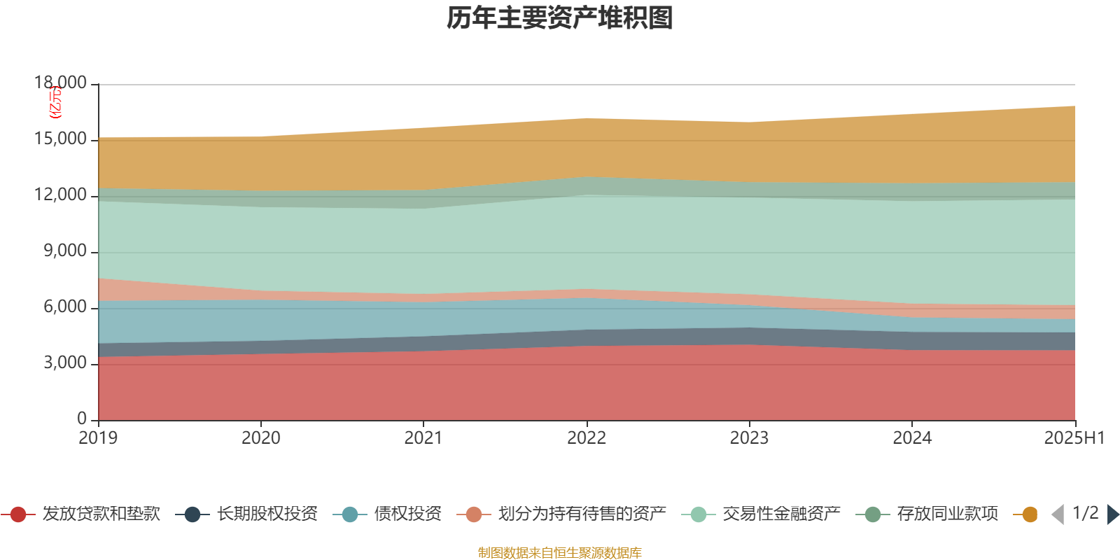 2025年上半年,公司平均净资产收益率为1.17%,较上年同期上升0.06个百分点,盈利能力有所提升。同时,公司经营活动现金流净额为236.6亿元,筹资活动现金流净额-365.48亿元,投资活动现金流净额75.22亿元,现金流状况良好。资产重大变化方面,截至2025年上半年,公司其他资产较上期末增加56.98%,占公司总资产比重上升1.49个百分点,显示出公司资产规模的扩张。