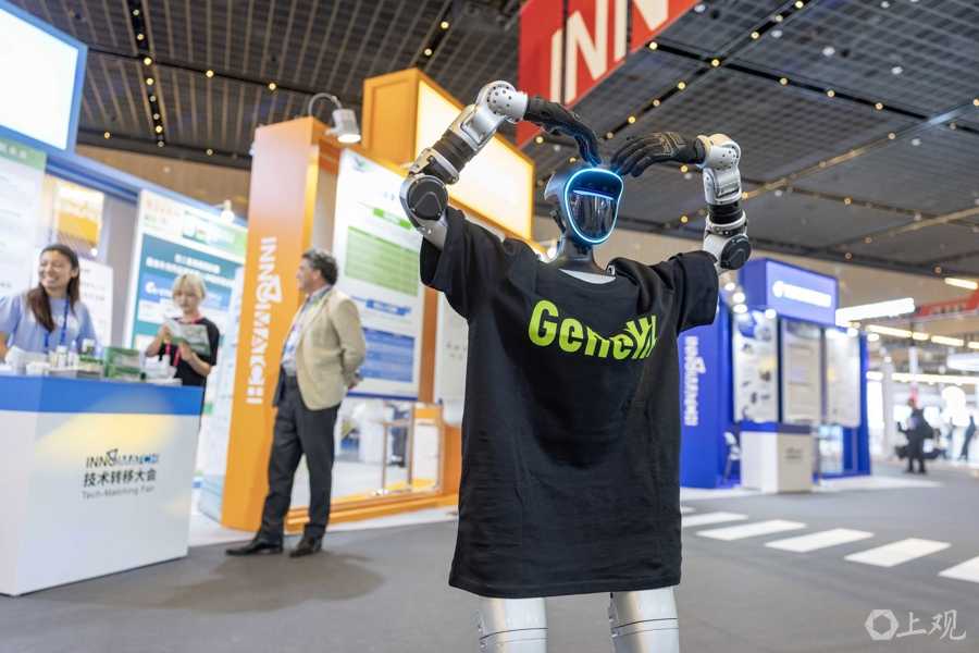 人形机器人在2025浦江创新论坛InnoMatch技术转移大会展区表演。赖鑫琳摄