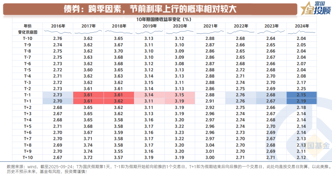 从节后债券基金的表现来看,2016年-2024年,短债基金指数、中长债基金指数,在节后5个交易日收益率为正的概率分别达到100%、89%。底层原因则在于票息在长假期间的积累效用。债券投资在长假后往往能带来稳定收益。