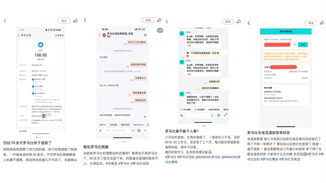 9月26日上午,时代财经试图拨通罗马仕官网的电话,询问公司后续的处理方式和经营情况,但官网提供的两个号码拨通后,一个号码称咨询量激增,建议联系购买渠道客服;另一个则在根据提示查找分机号后挂断。7月事发后,罗马仕基本选择对外保持沉默,大多数时候,只有召回计划相关的问题可以得到人工客服的回应。时代财经注意到,近期社交媒体上有用户晒出收到罗马仕退款的截图;但也仍有用户维权数月后仍未收到退款。