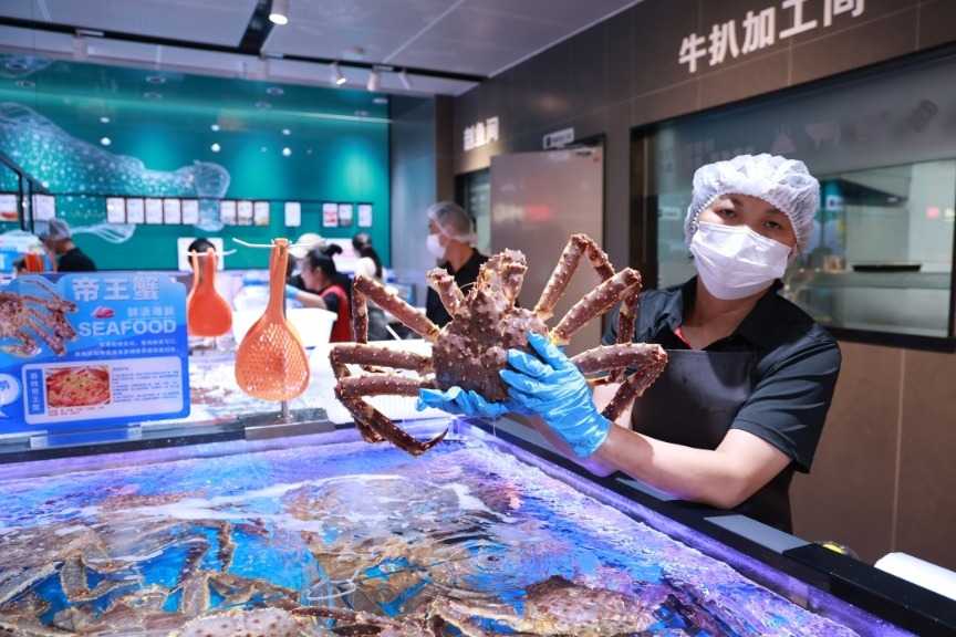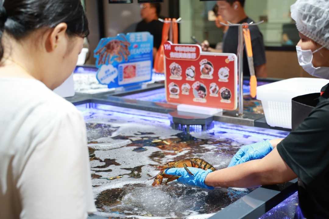 在服务层面,门店全面借鉴“胖东来模式”,提供各类贴心服务。肉禽柜台可依顾客需求提供切丝、切片、绞肉、剥皮等处理;高端海鲜提供清洗、打氧及简单烹饪服务(如清蒸、蒜蓉),确保食材处理便捷、食用安心,优化消费服务。