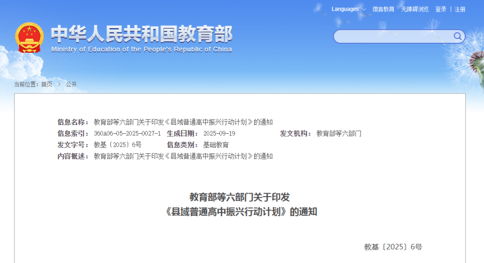 教育部发布《县域普通高中振兴行动计划》,推动教育协调发展