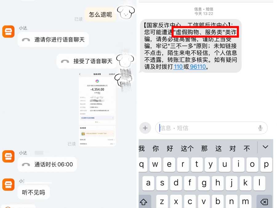 不久,对方向她展示一张所谓“支付宝退款异常”的截图,并诱导她在陌生页面输入转账金额和支付密码。“输入1000元没事,后台会拦截的”“支付密码输前5位,第6位按住不动就行”,话术环环相扣,极具迷惑性。“当时真的有点慌,好在父母在旁边提醒,及时挂失了银行卡。”她回忆道。