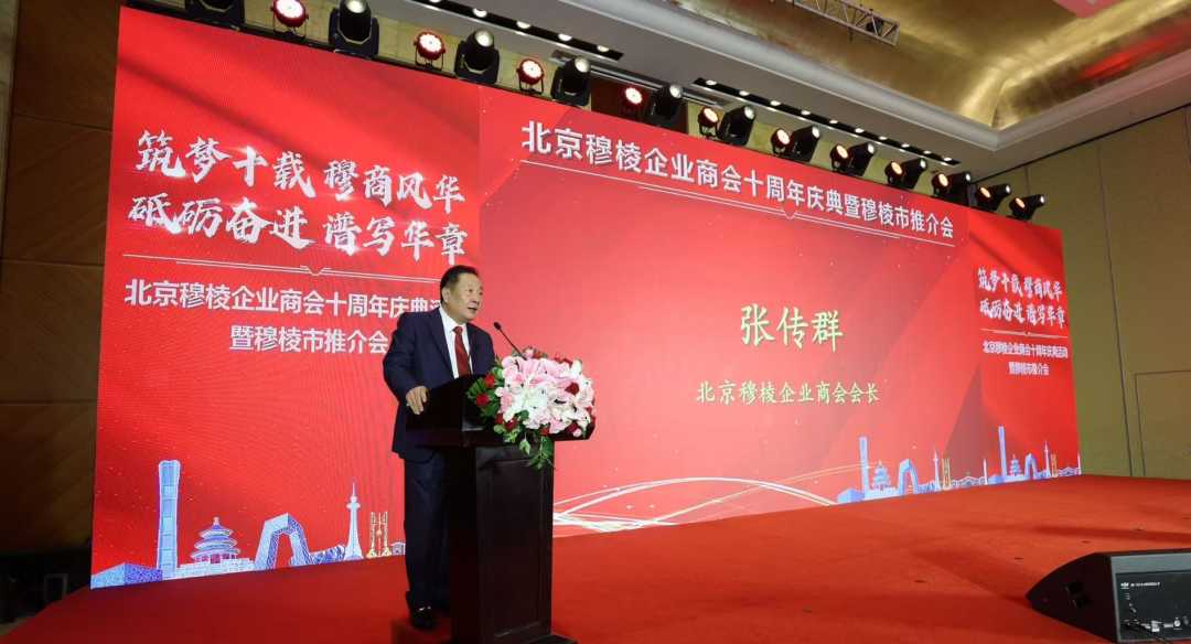 北京穆棱企业商会会长张传群回顾了商会十年来的发展历程与取得的丰硕成果,总结了“服务会员、促进共赢”的成功经验。他强调,商会取得的成绩离不开社会各界的鼎力支持和全体会员的共同努力。面向未来,张传群会长表示,穆棱商会将继往开来,开拓创新,继续积极搭建京穆两地的经贸桥梁,为会员企业提供更优质的服务,携手共创更加辉煌的明天,推动区域经济合作迈向新高度。