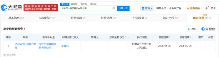 记者29日查询中国执行信息公开网,结果显示万达集团董事长王健林的“限消”信息已被移除,这一动态引发了广泛关注。此前,大连万达集团股份有限公司及其法定代表人王健林等曾被限制高消费,目前该条数据已移入历史限制消费令。
