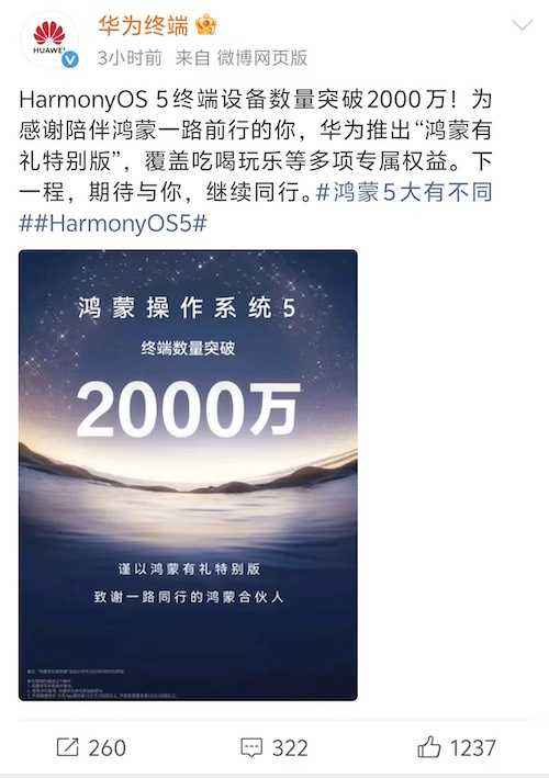 鸿蒙操作系统5终端突破2000万,鸿蒙6将强化互联与AI