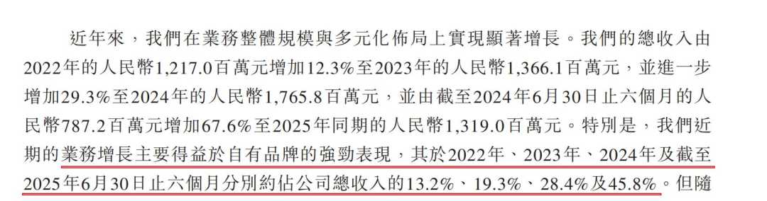 继绽家后,若羽臣在2024年至2025年相继推出口服美容品牌“斐萃”、膳食补充剂品牌“纽益倍”,招股书显示截至2025年6月底,自有品牌收入占比达45.8%,远超电商运营服务28.8%的占比。