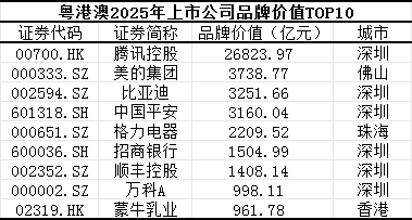 《每日经济新闻》记者基于“2025中国上市公司品牌价值总榜TOP3000”(每日经济新闻与清华大学经济管理学院中国企业研究中心联合发布),梳理粤港澳上市公司品牌价值变化,并采访厦门大学品牌与广告研究中心主任黄合水解读。