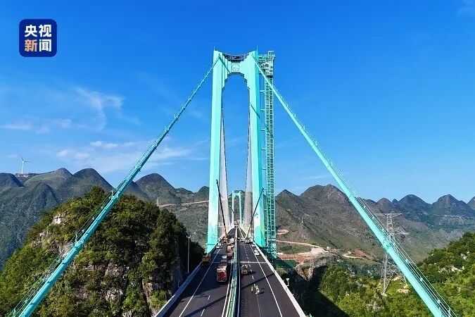 “横竖”都是世界第一,这是中国大桥花江峡谷大桥于28日开通运行。这座超级大桥主桥跨径1420米,居山区桥梁世界第一;桥面至水面高差625米,同样登顶世界第一。它将成为连通贵州六枝至安龙高速公路的关键枢纽,大桥全长2890米,跨越被誉为“地球裂缝”的花江大峡谷。通车后,原来需要绕行2小时的花江峡谷两岸贞丰县至关岭县,如今仅需2分钟即可直达。