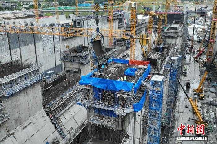 中新网钦州10月2日电 平陆运河集团2日介绍,平陆运河马道枢纽首个船闸闸室中墩近日顺利封顶,这标志着船闸主体混凝土结构施工进入最后冲刺阶段,为整个运河工程推进注入强劲动力。在基础设施建设领域,此类关键节点的突破意义重大。