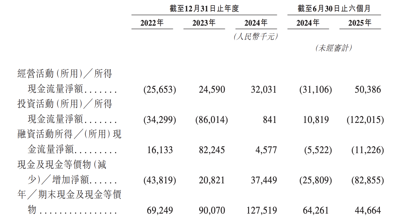于2022年及截至2024年止六个月,公司亦录得经营活动所得现金流出净额2570万元及3110万元。