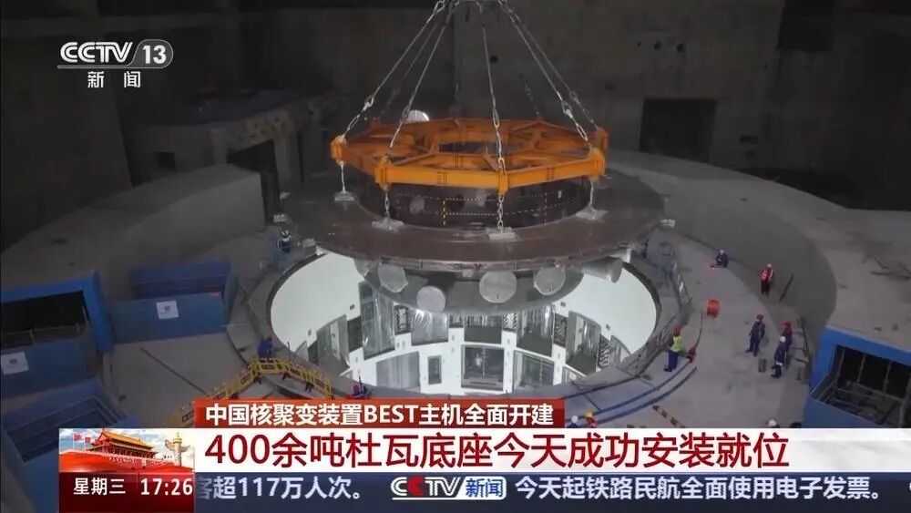 中国科学院合肥物质院等离子体物理研究所副研究员黄雄一表示,杜瓦底座安装完成之后,就标志着大部件的安装要开始了,随后相应的像磁体、真空室等重要的核心部件就要安装在杜瓦底座上,最终杜瓦底座将会被封闭起来,形成一个真空环境来确保托卡马克的运行。紧凑型聚变能实验装置BEST,是燃烧等离子体物理实验装置,采用紧凑高场超导托卡马克技术路线,总投资85亿元。2025年5月初,BEST的总装工作正式启动,比原计划提前了2个月,预计将在2027年完成建设并首次演示聚变发电,到2030年,有望通过核聚变点亮第一盏灯,聚变能商业化进程加速。