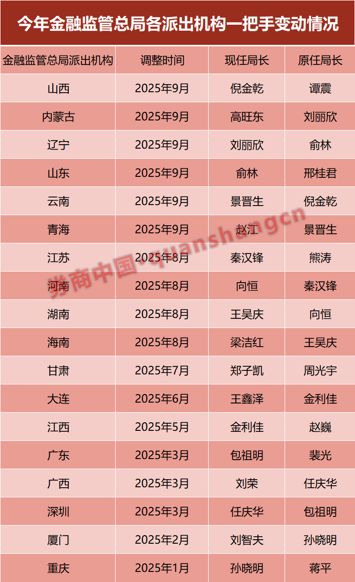 国庆假期前夕,金融监管总局的地方局局长迎来新一轮调整(金融监管)。