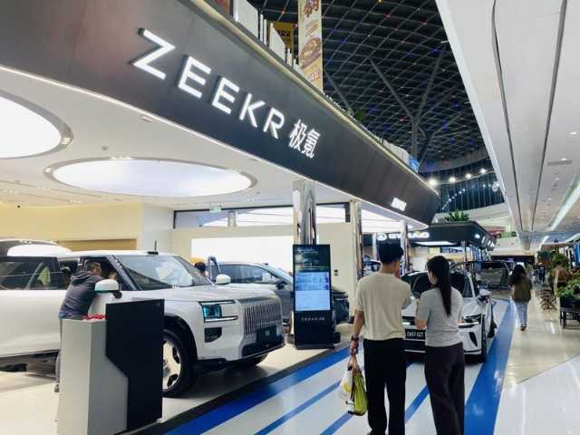 消费者在极氪汽车前。新京报贝壳财经记者林子摄