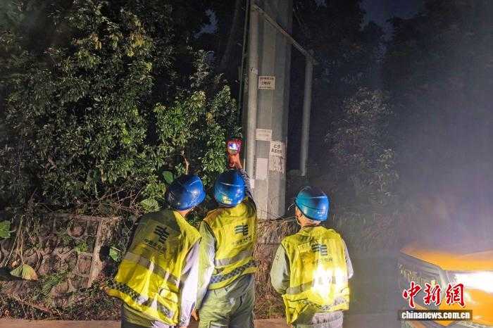 为应对台风“麦德姆”,南方电网广西玉林陆川供电局组织运维人员对辖区线路进行夜巡测温,确保设备在恶劣天气下正常运行。刘俊丁摄