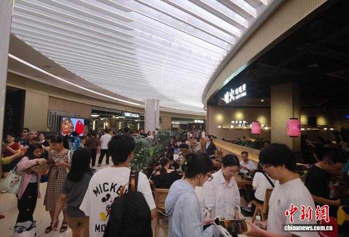 图为广西南宁市一商场内消费者排号等待就餐。林浩摄