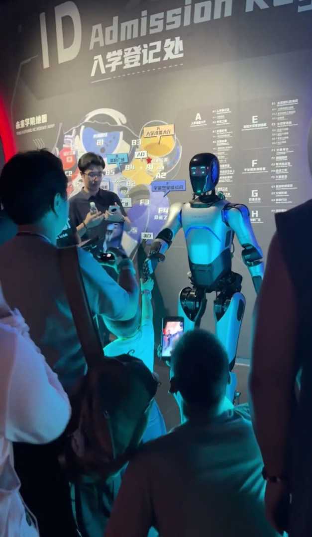 这款身高169cm、体重69kg的“钢铁伙伴”不定时穿梭于场馆各个区域开展互动活动,有时是虫洞市集的“贴心向导”,有时是展厅里互动打卡的“合影伙伴”,或是在水滴剧场内成为“舞蹈演员”。远征A2与机器狗携手登场,在舞台上为观众带来精彩的共舞表演,成为馆内热点。