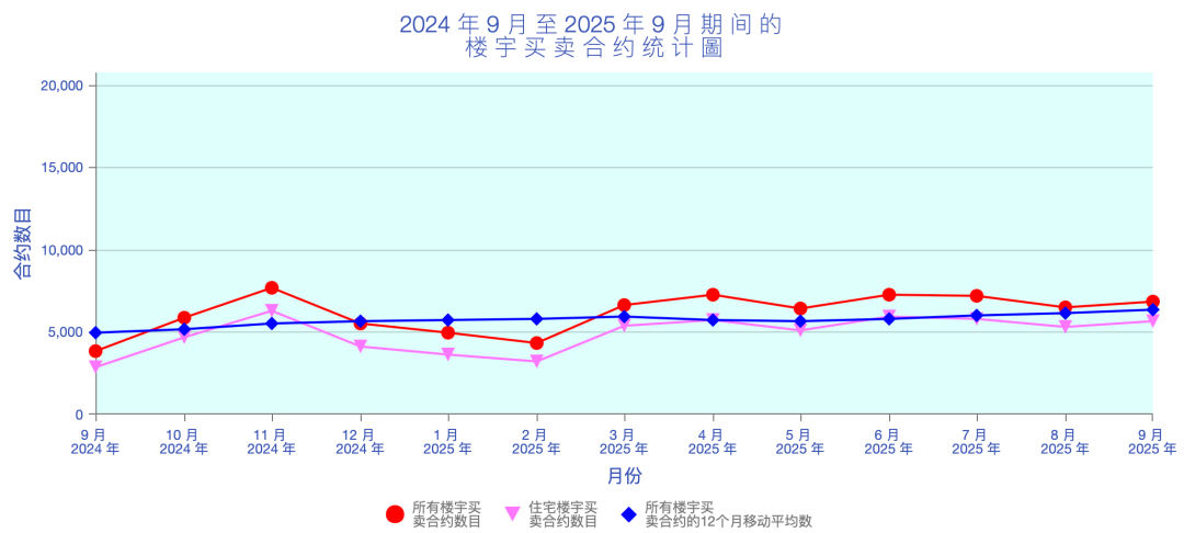 正如陈茂波提到的,今年以来,香港本地住宅物业市场趋稳。香港土地注册处最新统计数据显示,今年9月,香港楼宇买卖合约共6870份,按月升6.3%,按年升78.8%;合约总值535亿元,按月升11.9%,按年升93.4%。其中,住宅楼宇买卖合约占5643份,按月升6.7%,按年升98.1%;合约总值472亿元,按月升11.9%,按年升126.6%,香港楼市回暖迹象明显。