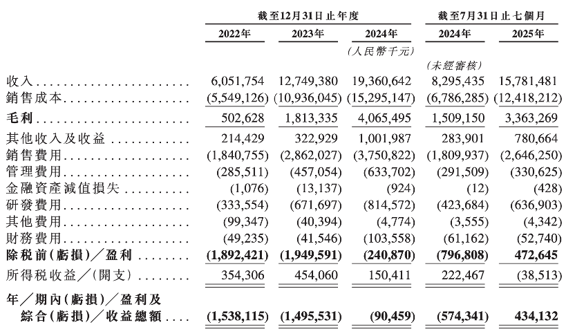此外,招股书表示,公司在2024年第四季度首次实现单季度盈利,经营现金流转正,是行业内最快实现单季度盈利、经营现金流转正的新能源车企。其毛利率从2022年度的8.3%升至2024年度的21%,2025年1-7月则进一步提升至21.3%。招股书援引灼识咨询数据称,公司2024年毛利率在新能源汽车行业中排名第二。
