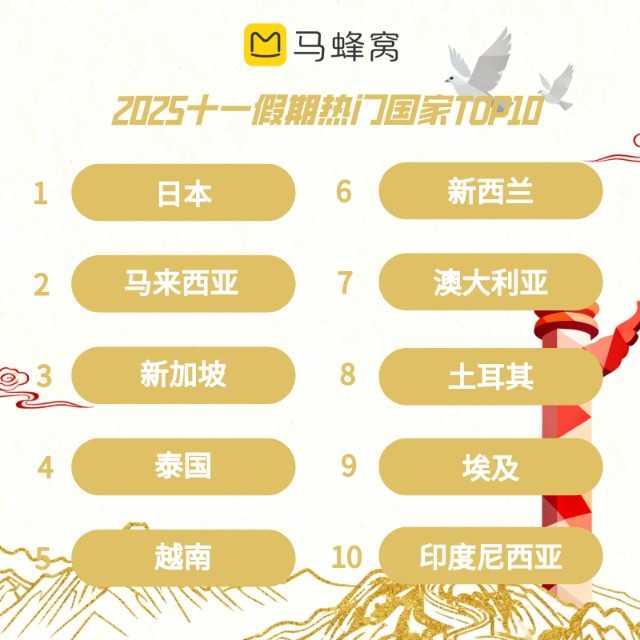 有了八天长假与拼假攻略,更多人把目光投向境外长线目的地。埃及今年格外受欢迎,首次冲进热门国家前十,不少游客去探寻金字塔下的古老文明;肯尼亚马赛马拉国家保护区、坦桑尼亚塞伦盖蒂国家公园更成了 “黑马”,冲进国外景区热度增长前三,近距离看野生动物迁徙,成了深度游爱好者的新选择。境外长线游成为新趋势。
