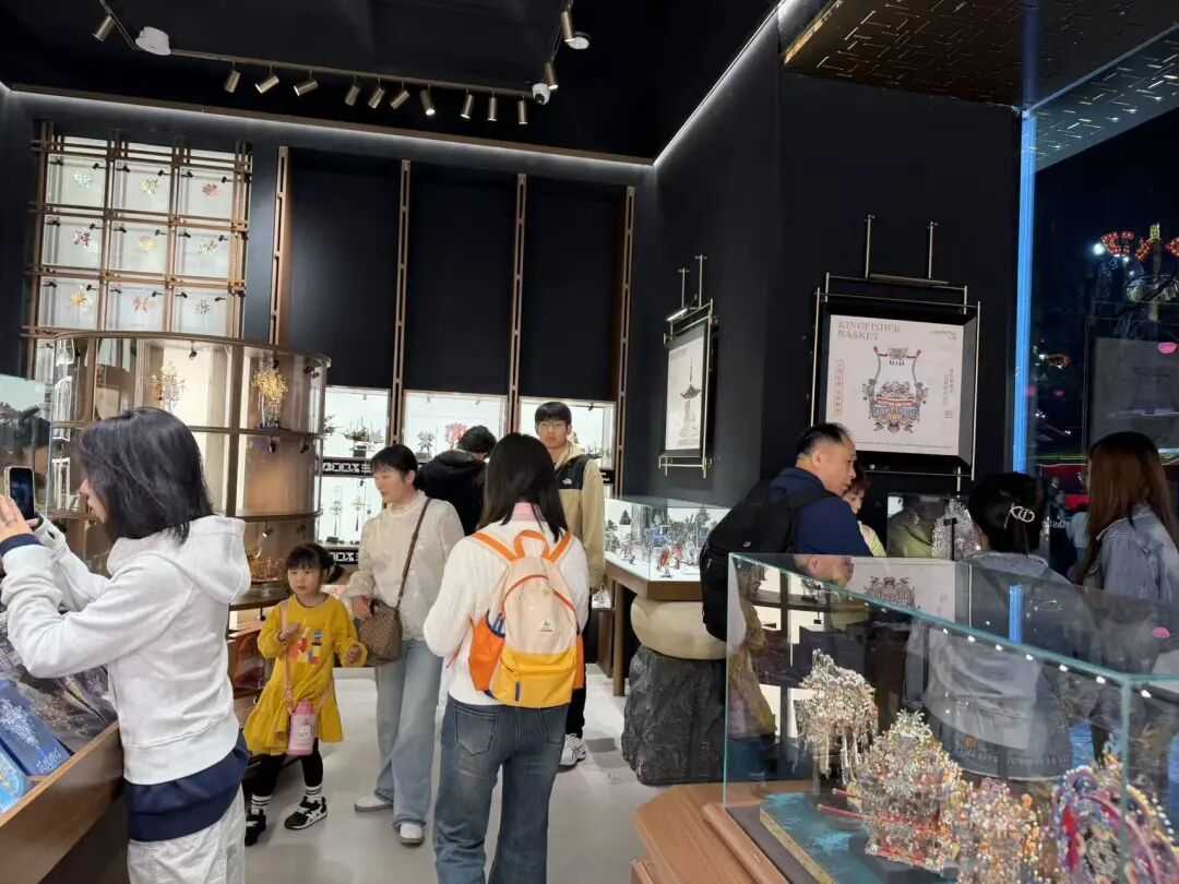 在曲江文创旗舰店内,以唐诗、兵马俑、博物馆文物为灵感设计的文创商品备受青睐。融合现代科技的“唐诗光影灯”、以唐代侍女为原型的“唐妞”盲盒等产品,让厚重的文化IP变得可亲可感,文创产品成为夜经济新亮点。