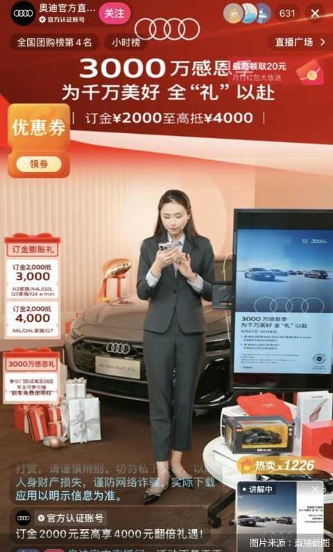 值得一提的是,线下给出优惠的同时,车企经销商在线上也加力“引流”。国庆中秋假期期间,北京商报记者在各大视频社交平台上看到,包括奥迪、吉利等车企的官方直播间在对多款车型进行详细解说并派发官方福利,与消费者互动。此外,经销商门店的直播间更是直接现金让利。